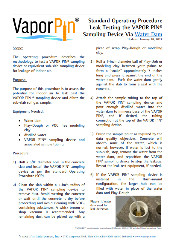 Leak Testing Sampling Device Water Dam